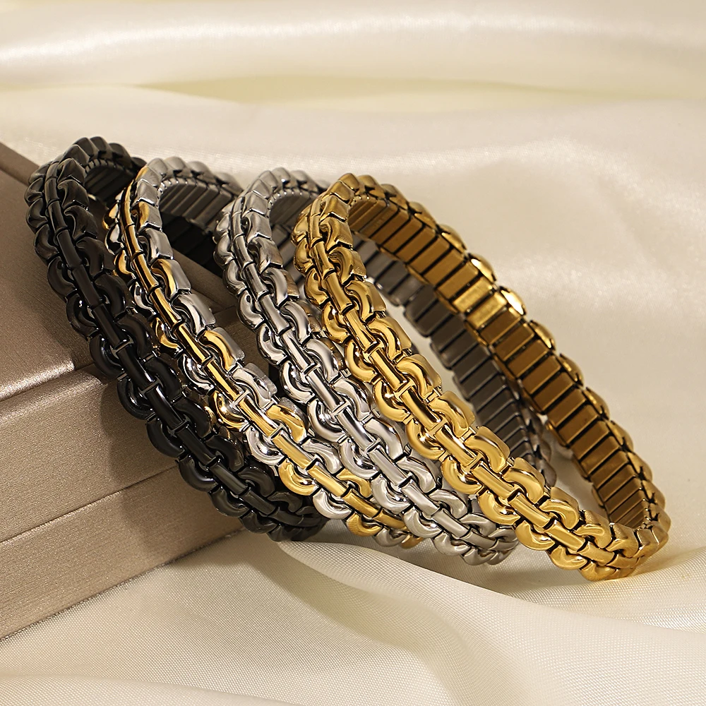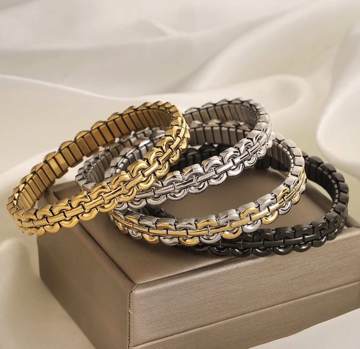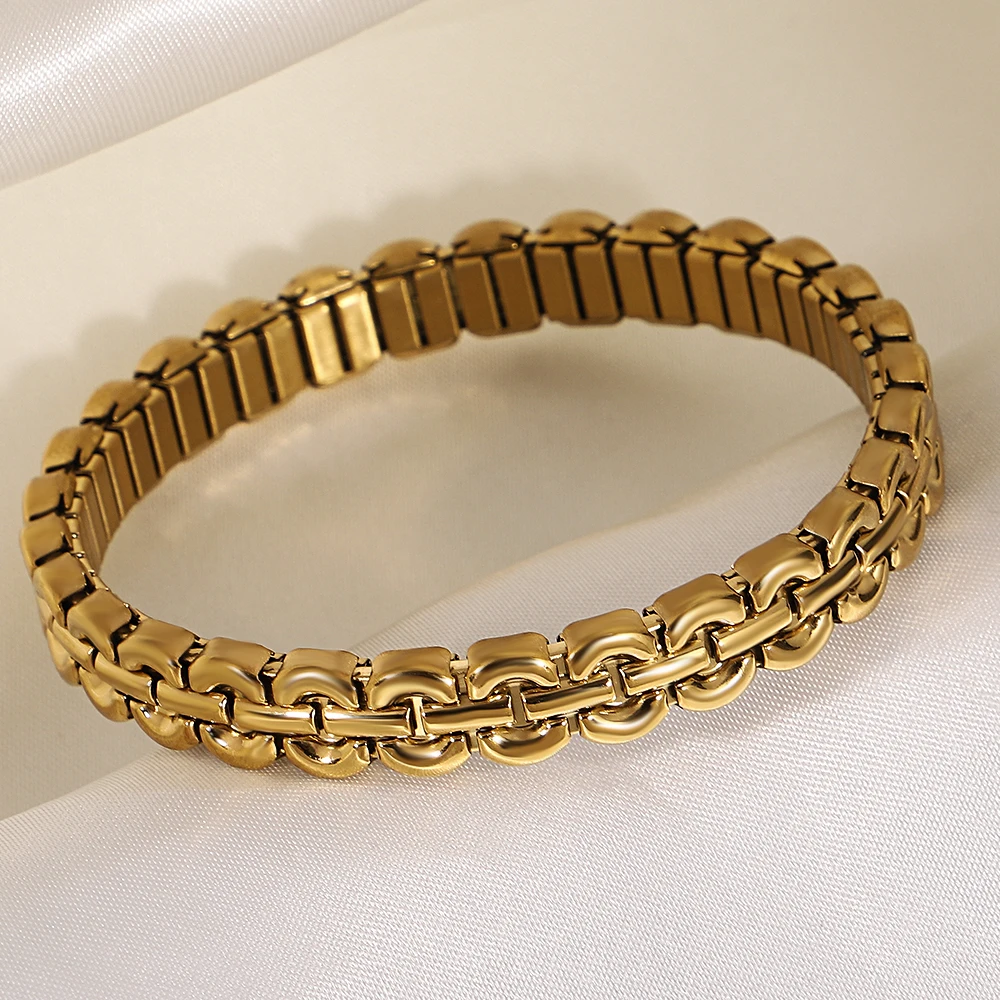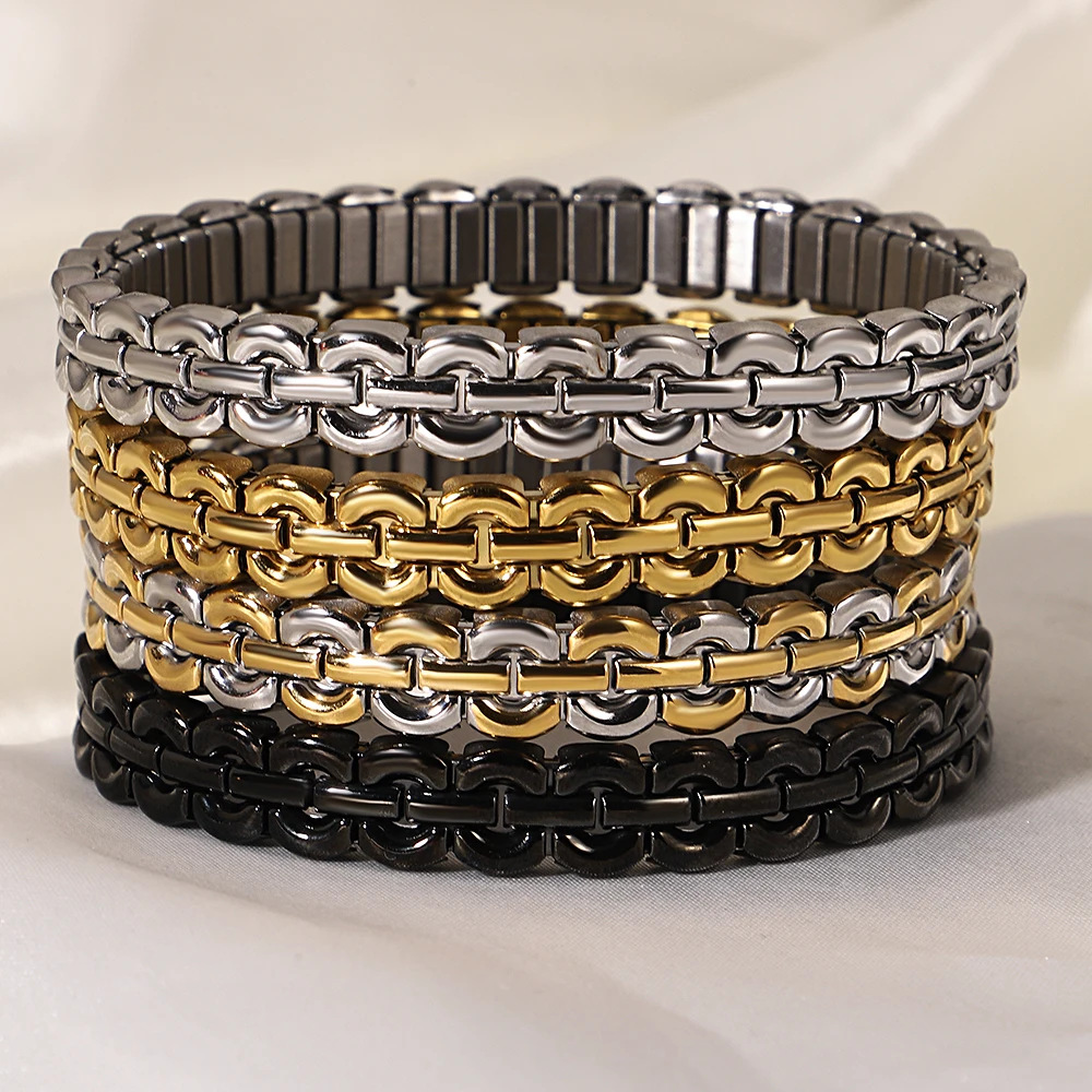 Stainless Steel Semi-Circular Link Bracelet – Two-Tone & Mono-Tone Bangle for Women