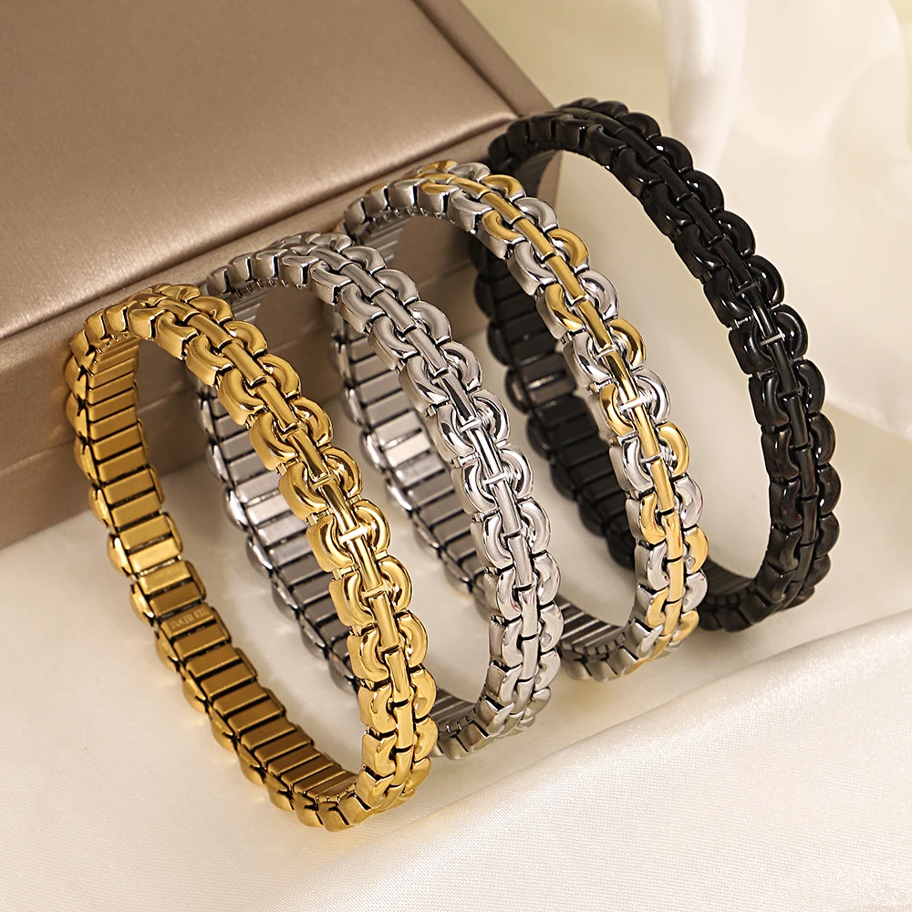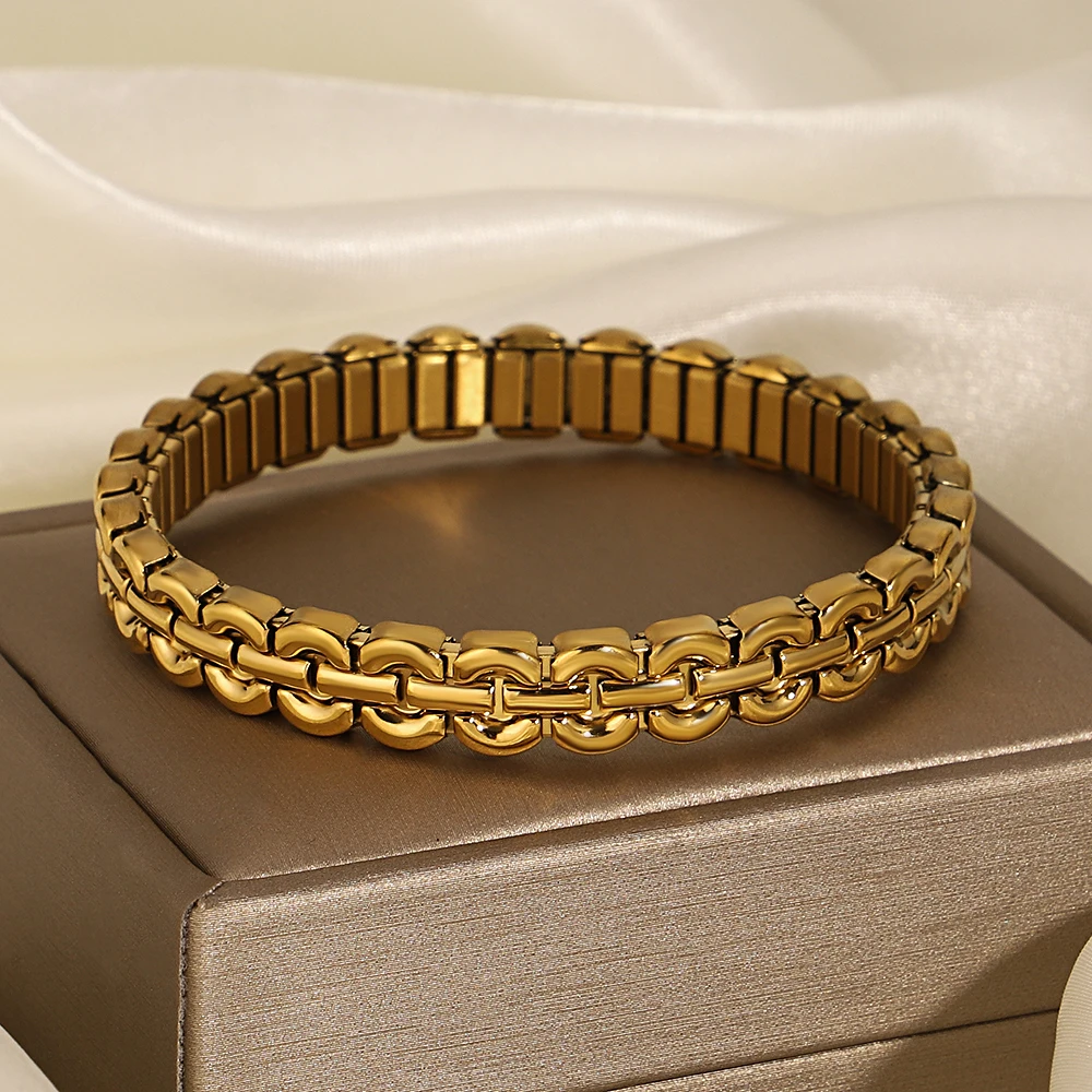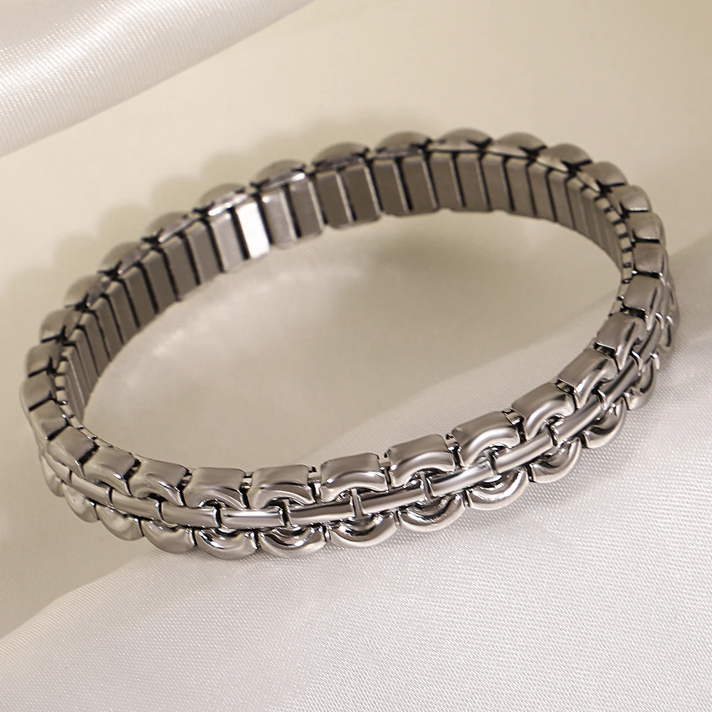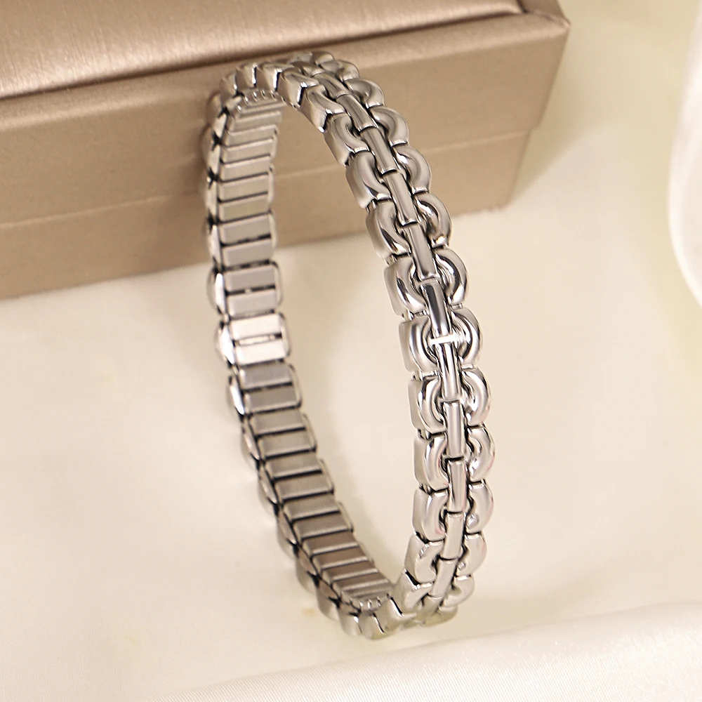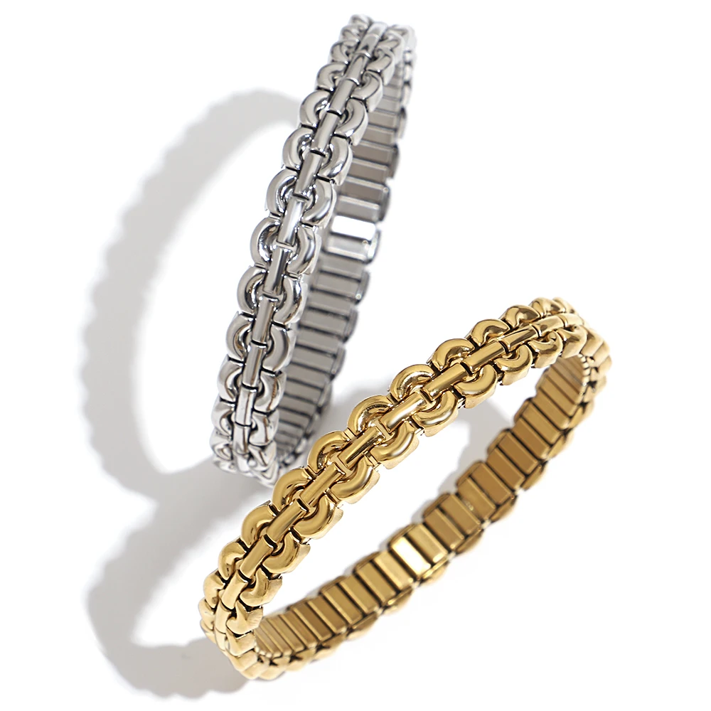 Stainless Steel Semi-Circular Link Bracelet – Two-Tone & Mono-Tone Bangle for Women