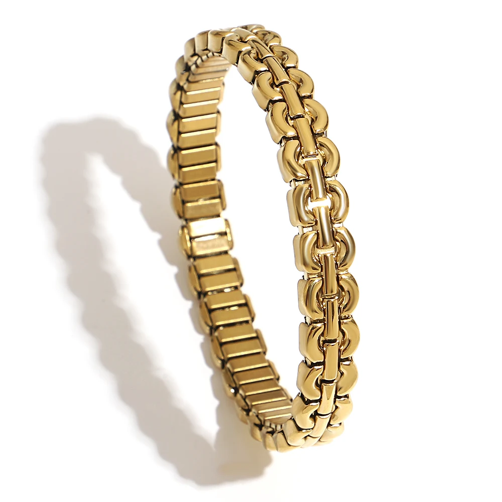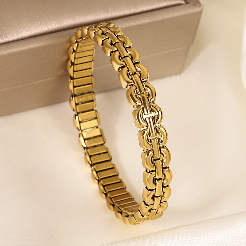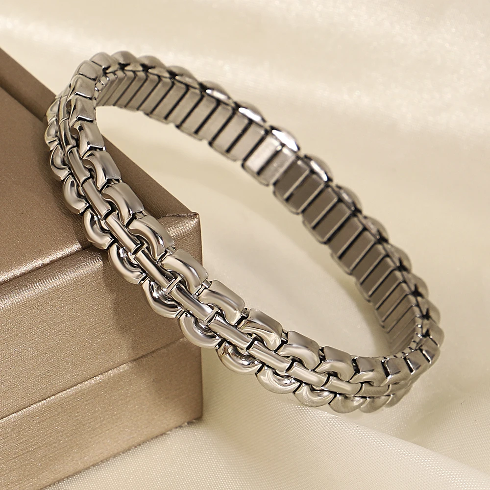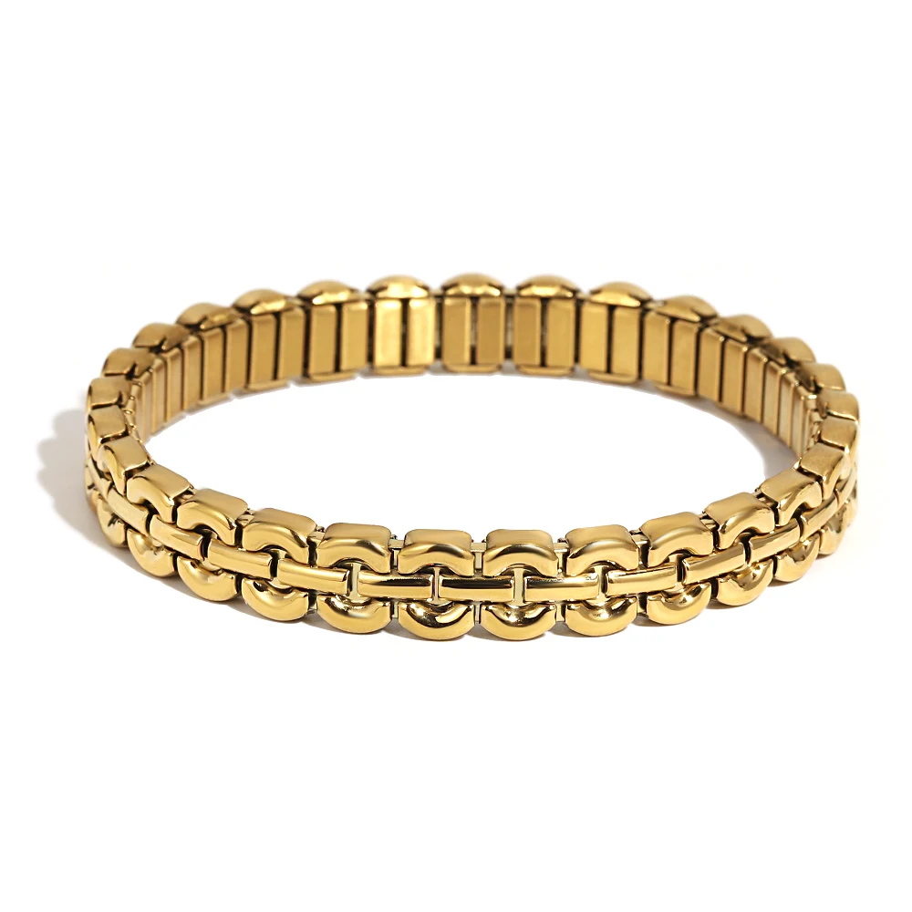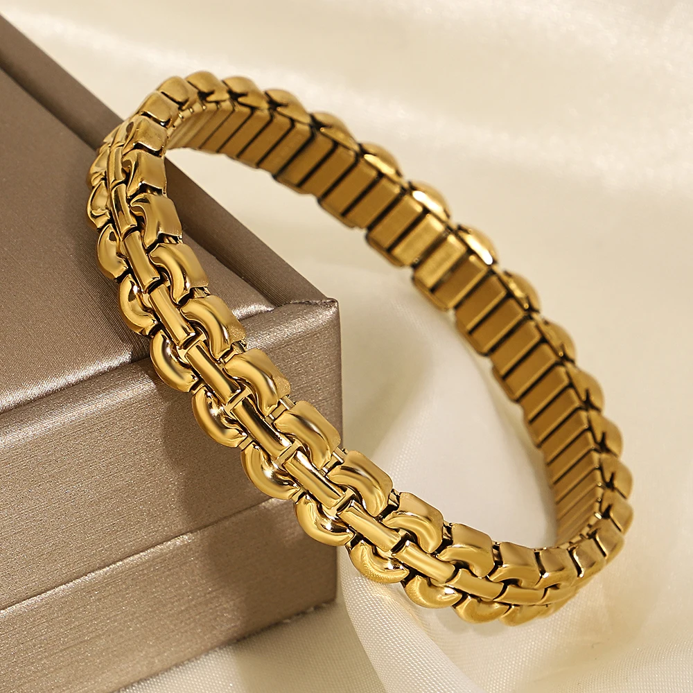 Stainless Steel Semi-Circular Link Bracelet – Two-Tone & Mono-Tone Bangle for Women