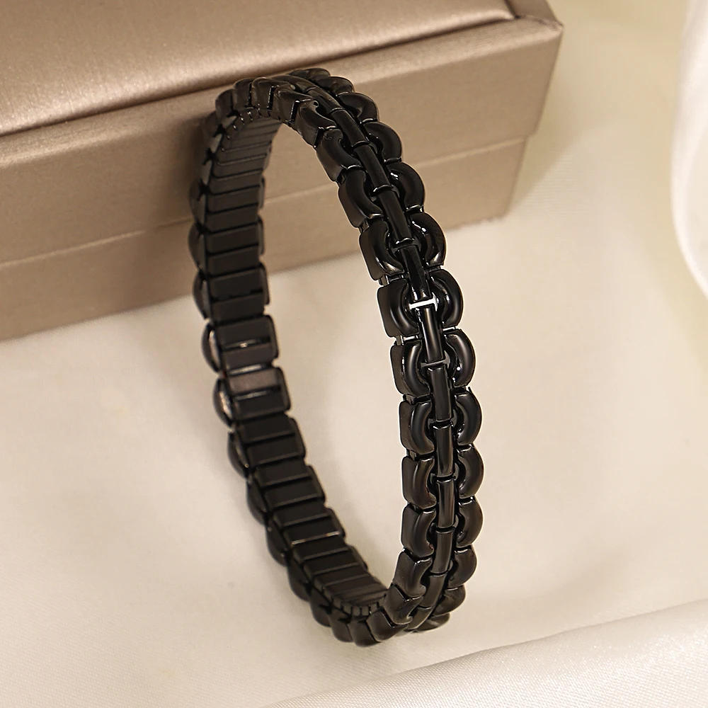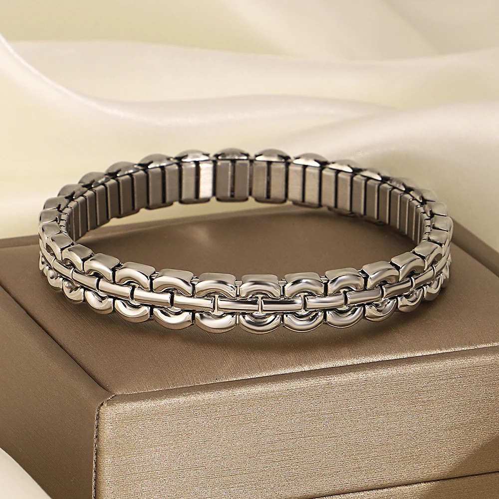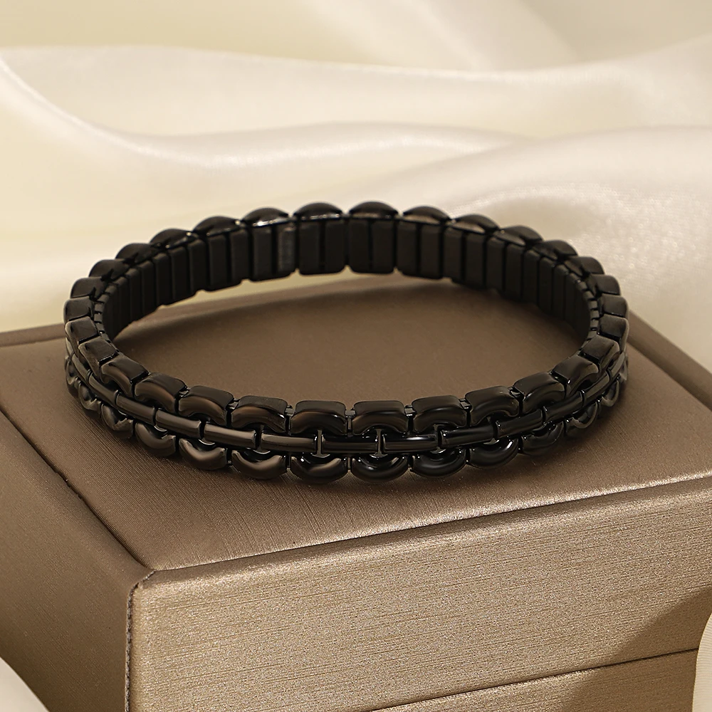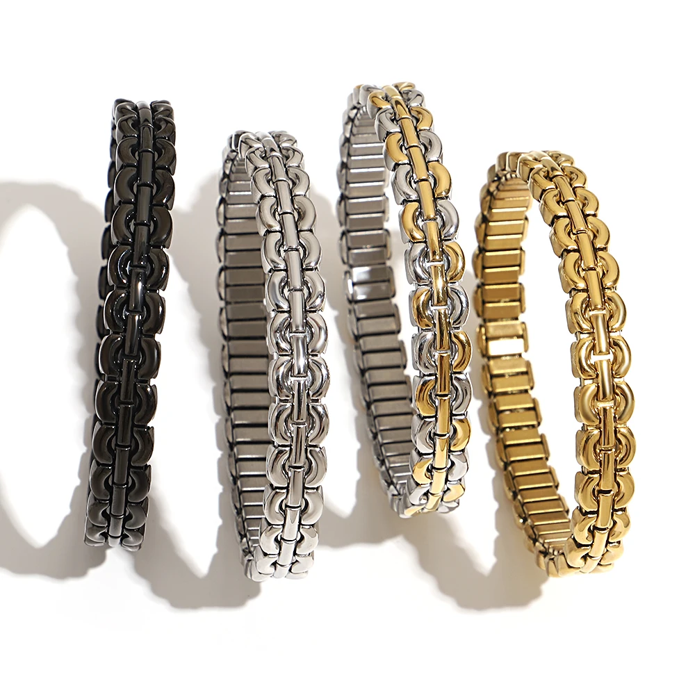 Designed for timeless appeal and everyday wear, this Semi-Circular Stainless Steel Link Bracelet brings sophistication and versatility together. Whether you prefer classic silver, bold black, or elegant two-tone gold, this bracelet blends perfectly with both casual and dressed-up looks.